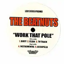 "Work that Pole" is the second single from The Originators, a 2002 album by East Coast hip hop group The Beatnuts. It was released by Landspeed Records in 2002 as a promo 12 inch. The song is produced by The Beatnuts and features raps by Juju, Psycho Les and Tony Touch, as well as a chorus by an uncredited female vocalist. As a featured performer, Tony Touch also provides scratches on "Work that Pole". The song's lyrics detail encounters with attractive women. The song's beat is characterized by its quick drums, vocal sample and minimalistic Latin vibe.