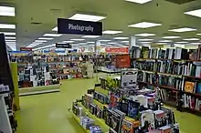 At the time of its opening in November 1980, in a converted building that had housed the Olympia bowling alley,[1][3] it was unchallenged in its claim as the biggest bookstore in the world. Although it retained the name, the Guinness Book of World Records listed the Barnes & Noble College Booksellers location on Fifth Avenue in New York City as the largest bookstore in the world based on floor space, although Powell's Books of Portland, Oregon, is usually considered the largest based on shelf-space. Nevertheless, World's Biggest Bookstore claimed the title on the basis that it carried the most titles.[2] The Barnes & Noble location closed in early 2014.[4] On December 22, 2010, Maruzen and Junkodou Shoten opened a 73,000 square foot (6804 m²) bookstore in the Umeda district of Osaka, Japan, overtaking these other three in terms of floor space.[5]