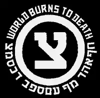 The band's logo usually appears written in Hebrew. The Hebrew wording may appear to be a literal translation of the band's name, but it is not. It is also not “World Burns to Death" with the Chaya font. The tsadi (sometimes spelled "tzaadi") has become the band's logo. The logo is also noteworthy because the symbol is an inscription commonly used on Israeli army munitions.