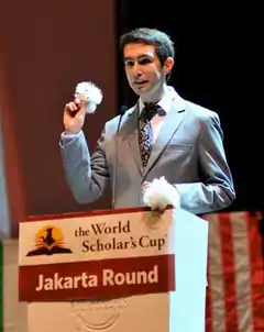The World Scholar’s Cup (abbreviated WSC) is an international team academic program with more than 15,000 students participating from over 65 countries every year.[1] The program was founded by DemiDec, in particular by Daniel Berdichevsky, in early 2006.[2] First taking place in South Korea in 2007 at the Hankuk Academy of Foreign Studies,[3] the World Scholar's Cup aims to teach students with interesting, not-taught-in-schools lessons, and finding common ground between people of different statuses.