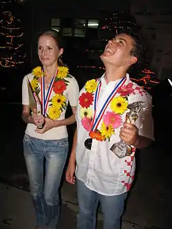 1992 – Duisburg, Germany – (29 June – 13 July) – The venue, a large sports complex, was playing host to over 500 competitors engaged in 10 World Junior Championships. There were initially some problems with overcrowding, but these were quickly sorted out by the organisers. There was a commentary room where those who had finished their games could benefit from the expert opinion of Grandmaster Helmut Pfleger. TV screens were displayed throughout the venue to cover the positions on the top boards. Peter Leko of Hungary, the world's youngest IM at the time, played in the U-14 event and was expected to win with an enormous Elo rating advantage over his closest rival. However, his opponents had not read the script and he finished a disappointing fourth. There was a shock too in the Girls' U-14 section, when the Romanian Corina Peptan, top seed and national champion at 14, only managed to secure the silver medal. In contrast, the U-18 events went according to expectation with Sakaev (in the Boys/Open) and Kadimova (in the Girls) totally dominant. There was a good showing from the English contingent; by comparison other western European nations failed miserably. McShane won the Boys/Open U-10 event, despite being the youngest competitor at 8. Ruth Sheldon took silver in the U-12 Girls and Harriet Hunt a bronze in the U-14 Girls, even though she was heavily outrated.