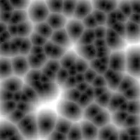 Worley noise is a noise function introduced by Steven Worley in 1996. In computer graphics it is used to create procedural textures,[1] i.e. textures that are created automatically with arbitrary precision and do not have to be drawn by hand. Worley noise comes close to simulating textures of stone, water, or biological cells.