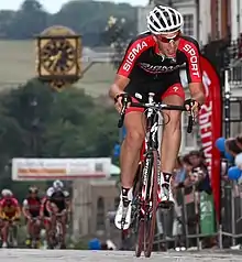 Sybrandy was born in the Netherlands but spent most of his career in the United Kingdom.[3] Although Dutch, in 2008, he came second in the British National Time Trial Championships to Michael Hutchinson.[4] In 2012, Sybrandy suffered a crash in the Tour of Britain, causing fractures to his cheekbone and eye socket, as well as fractures to three lower vertebrae.[5] When Team IG–Sigma Sport folded at the end of the 2013 season, Sybrandy was left without a team, and decided to return to full-time employment whilst also pursuing his racing career with support from Sigma Sport, the sponsor of his old team.[6] It was announced that Sybrandy would be team leader for the Nuun–Sigma Sport–London team for the 2015 season.[7]