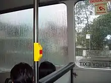 Decals can be made to cover side and rear windows on a vehicle, but for safety reasons, the front windows used by the driver are not covered. The decals on side windows are typically perforated, so that it is still possible for passengers to look outside. This See-through graphic technology originated in the 1980s, with the first dominant patent registered by a British company called Contra Vision.[6]