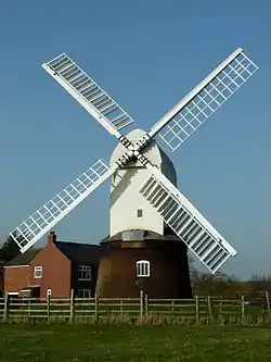 The mill is the last post mill in the north of England, and was built between 1760 and 1790 to serve the Elsham Hall estate. Originally it had four common sails, but through most of its working life had a more usual combination of two common and two spring sails, providing power with flexibility. It was working until the 1940s, when it had four spring sails, before becoming derelict. Following a possibility of demolition it was acquired and restored in 1965 by Wrawby Windmill Preservation Society. Maintenance work in 2008, which returned the mill to mixed sail types, was funded by the SPAB Mill Repairs Fund and local residents.