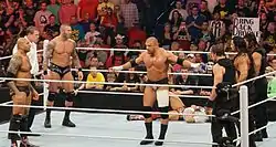 At the Royal Rumble, The Wyatt Family (Luke Harper, Erick Rowan, and Bray Wyatt), cost John Cena his match for the WWE World Heavyweight Championship against Randy Orton.[40] At the Elimination Chamber event, the Wyatt Family attacked Cena during his Elimination Chamber match for the same championship, which directly led to Cena's elimination from the match.[41] Wyatt was motivated by a desire to end "this era of lies", beginning with Cena, because he wanted to expose to the world that Cena being an upholder of all that is moral and good and right was merely a hollow illusion.[49] Proving that Cena was a fraud would ruin his legacy, but Wyatt wanted to take it one step further by turning Cena into a monster.[50] On the March 10 episode of Raw, Cena issued Wyatt a challenge for a match at WrestleMania, which Wyatt accepted.[51]