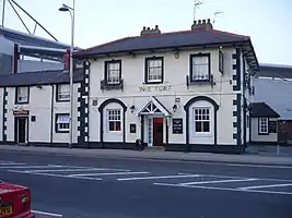 The club's fans developed an affinity with the fans of fellow football league club Brighton & Hove Albion, who themselves had managed to successfully depose their chairman and keep control of their stadium after he had sold the ground for development purposes in almost the same circumstances.[18] On 3 December 2004 the club was placed in financial administration by the High Court in Manchester as the club owed £2,600,000, including £800,000 which was owed to the Inland Revenue in unpaid taxes. Wrexham became the first League club to suffer a ten-point deduction under the new rule for being placed in administration, dropping them from the middle of the League One table to the relegation zone after the point deduction, and subsequently condemned Wrexham to relegation.[19]