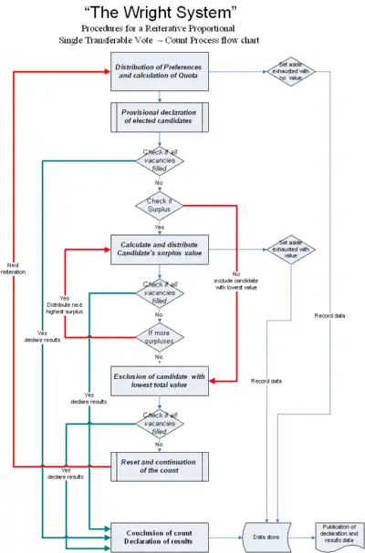 The Wright system is a refinement of rules associated with proportional representation by means of the single transferable vote (PR-STV) electoral system. It was developed and written by Anthony van der Craats, a system analyst and life member of the Proportional Representation Society of Australia. It is described in a submission into a parliamentary review of the 2007 Australian federal election.[1][2]