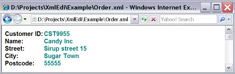 The same XML/EDIFACT instance presented with help of an XSLT stylesheet: