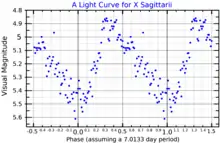 - Li Causi, G.; et al. (January 2013). "On the binarity of the classical Cepheid X Sagittarii from interferometric observations". Astronomy & Astrophysics. 549: 5. arXiv:1211.4698. Bibcode:2013A&A...549A..64L. doi:10.1051/0004-6361/201220207. S2CID 54805744. A64.