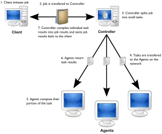- The agents, which process their own allocated part of the calculation and return results to the controller, which returns them to the client.[21][8]