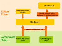 A group of volunteers are responsible for adding words at XOBDO database. As of now the website has two levels of volunteers: "contributors" and "editors". A contributor enters an English and its corresponding Assamese word to the temporary database. Afterwards an editor assigns a unique "idea ID" to the corresponding English and Assamese words and carries on other editing works, if required, to match the standards of XOBDO. After assigning the idea ID the words are added to the main database ready to be retrieved by a user.[5]
