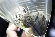 Other major problems facing the canal system is the damage by introduced species and disease destroying native ones. Water lilies were introduced to the canals from Brazil in the 1940s. Since then, they have become a serious problem as their overgrowth depletes minerals and oxygen from the water. Up to 400 tons of the plant has been extracted from the canals monthly. In 2006, a Brazilian insect (Anthonomus grandis) was introduced to the canals to help control the plant.[29] However, some need to be maintained because the axolotls are using them for reproduction purposes.[22] Introduced species include carp and tilapia, which were introduced in the 1960s. However, these have been very detrimental to the native ecosystem, especially the axolotl, whose eggs they eat. Despite tons of the fish being caught in the canals, they are still a serious problem.[30] Another major problem is the loss of trees, especially junipers in the ecological zone. Over sixty percent of the area is considered to be serious deforested and eighty percent of the junipers have the parasitic plant mistletoe.[22][31]