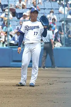 Expected to be an immediate contributor,[28] Yanagi was groomed in Spring training to become a part of the starting day rotation[29] and was even challenged to become opening day starter by manager, Shigekazu Mori.[30] Unfortunately, before the start of the 2017 NPB season, Yanagi was injured.[31] Yanagi spent time with the farm team recuperating and pitched 16 scoreless innings with the lower grade team[32] before being registered for the Dragons top team for the first time on May 21.[33] Yanagi made his debut on May 23[34] with one scoreless inning against the Yokohama DeNA Baystars. On May 28, he was given his first substantial work as a pitcher as he came in for 3 innings of long relief against the Tokyo Yakult Swallows after Raul Valdes gave up 6 runs in his first two innings where he took 4 strikeouts for 1 earned run.[35]