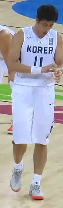 Yang was called up to the youth national teams and participated in the 2003 FIBA Under-19 World Championship. He made his senior national team debut at the 2007 FIBA Asia Championship.[23] At the 2009 FIBA Asia Championship, he had his best individual tournament to date and helped the Koreans to a seventh-place finish while averaging a 12 points and 4.9 rebounds per game.[24] Despite his efforts, Korea failed to qualify for the semifinals of the tournament for the first time in their 25 tournament appearances.