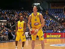 ![]() Yaniv Green (right) shooting a free throw beside Derrick Sharp (left) | |