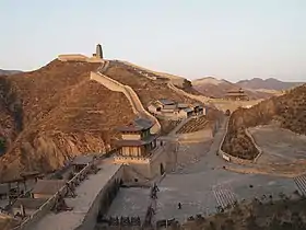 Under the Mongolian Yuan Dynasty, the great khan nominally controlled the peoples on both sides of the wall and its fortifications were fallen into disrepair.[1] Under the Ming, it was reconstructed as part of the Inner Great Wall in 1374 and these are the defensive works seen today.[1] It is one of the few stone stretches of the wall left in Shanxi.[21]