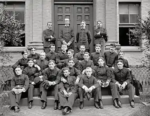 Although a Marylander, Stirling secured his appointment to the Naval Academy the following year from William Whiting, congressman from Massachusetts's 11th congressional district. Whiting was a family friend and Stirling's frequent ice-skating companion on the Potomac. Since no one from Whiting's district had sought an appointment that year, it could be filled by the Secretary of the Navy at the Congressman's request. Whiting wrote the Secretary and it was done. Stirling reported for examinations that he passed and entered Annapolis on September 6, 1888.[13][14] Naval Cadet Stirling continued his less than stellar academic endeavors at Annapolis. "I lacked fundamental grounding in the various basic subjects, but, even worse, I had not formed the habit of close application and was much keener for games and pranks than for my studies. At times, however, things seemed easy enough, showing that after all my brain was sound but that it needed much disciplining."[13]