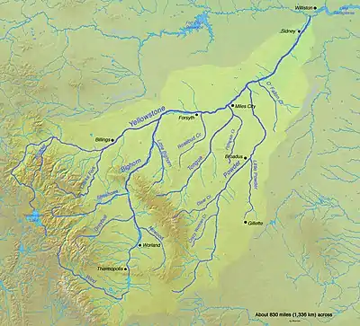![]() Map of the Yellowstone River watershed | |