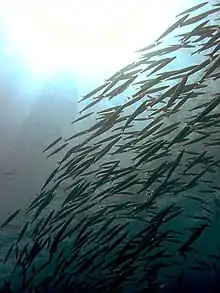 The yellowtail barracuda (Sphyraena flavicauda) is one of the smaller species of barracuda of the family Sphyraenidae, which can be found in Indo-West Pacific oceans. It has also invaded the Mediterranean through the Suez Canal from the Red Sea, making it one of the Lessepsian migrants.
