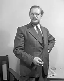 York Wilson was trained at the Central Technical School, but he was mainly self-taught.[1] He began as a commercial artist and illustrator, working for Brigden`s engraving house in Toronto (1926) where he was influenced by Charles Comfort and Will Ogilvie, then at Sampson-Matthews Limited.[1][2][3] He took night classes at the Ontario College of Art, and later at the Detroit Institute of Arts. In 1927, Wilson began working in Detroit where he learned illustration and lettering and was also exposed to museums and books about fine art.[4] However, he lost his job due to the Great Depression and returned to Canada in 1930. His paintings from the early 1930s to the mid 1950s were representational and even, social realist and satirical, as, for instance, his Welfare Worker (1941).[4]