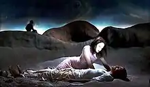 With a concept for the video to visually look like a "mixture of a piece by Ingmar Bergman and a Samurai warrior movie",[29] the director created a rock pool and white sand dune landscape dominated by a large pair of eyes in the background sky. Throughout the video, an effect similar to bioluminescent insects flying at night is also employed. The establishing shot is of the landscape, which fades to reveal Manson tending to an unconscious man who has washed up on the shore. While she tends to him, the male members of Garbage are seen lurking in silhouette in the background, while she sees her own reflection acting independently of her at the man's other side. After a while, the man regains consciousness as the sky changes to pink and the image onscreen changes to soft focus, before fading out as Manson sings the final lyrics.