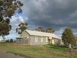 In 1953 the railway passenger service was terminated and the line was formally closed in 1987.[2] The line ran through the town, which had grown up around it, and the iron rails are visible where they cross Youanmite road as the line travels north. The former town hall still exists and is used occasionally by the local community.