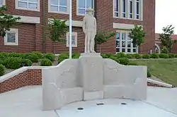 The Young Memorial, also known as the War Memorial Monument, is a World War I memorial located on the campus of Hendrix College in Conway, Arkansas. The sculpture consists of a semicircular seating area, its wings flanking a central square pedestal on which stands a carved rendition of a doughboy. The face of the pedestal bears a relief of the Statue of Liberty, while the backs of the seats have reliefs of female figures, one representing Liberty and the other Peace. The memorial was designed by Hendrix College Professor George Currie, and was placed in 1920.[2]