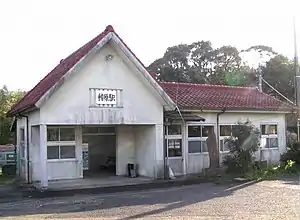 The station consists of two side platforms serving two tracks at grade with a siding. The station building is a simple wooden structure with a tile roof and is located at a slightly higher level than the platforms and tracks. It is unstaffed and serves only as a waiting room. After the ticket gate, a short flight of steps leads down to a side platform. Access to the opposite side platform is by means of a level crossing.[2][3][4]