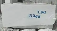 | Die (quarried) [3] | 14'-0" (4.267 m) | 7'-4.8" (2.255 m) | 6"-0" (1.828 m) | 621.6 cubic feet (17.60 m3) | 56 (55.86 metric) -a |