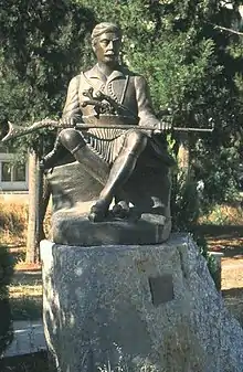 There are many things about him to describe, and during his era he was constantly fighting tyranny. One would need to write a whole book about it. Kapetan Zaharios was very fast, with a flexible body, average height, strong back, round and handsome face, brown eyes and a scar above his upper right eyebrow, which made him even more handsome. His hair was brown and curly. He had a strong and powerful voice, with a strong will. He was very independent, in which he would never submit to anyone and would never recognize anyone superior to him. He would also never carry money or a wallet wherever he went.[3]