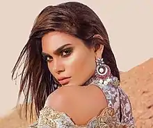 One of her photoshoots by a salon for the magazine Hello Mag in 2019,[10] in which she was styled with a skin tone many shades darker than her own, evoked controversy for allegedly promoting "blackface" and cultural misappropriation, and was perceived by critics as racist.[11][3][4] Abid had shared the pictures on her personal Instagram account.[12] The posts were noted to have received backlash and trolling.[13] Abid defended her photoshoot, stating the point was to empower darker-skinned women and send a message on their lack of representation; she also called out the "colourism" that allegedly existed in society, questioning why she was being criticized for adopting a dark profile when in numerous other photoshoots, she had been purposefully presented in lighter tones.[4]