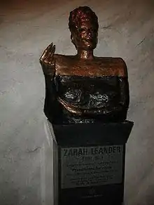On the other hand, in an interview recorded shortly before his death in 1996 the senior Soviet intelligence officer Pavel Sudoplatov claimed that Leander had in fact been a Soviet agent with the codename "Stina-Rose". Recruited by the Soviet Union before the outbreak of war, she was said to have refused payment for her work because she was a secret member of the Swedish Communist Party and therefore conducted the work for political reasons.[6] Leander herself denied any suggestion that she had acted as a spy for any country.