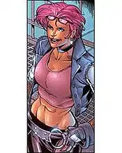 She has short naturally auburn hair,[5] which has been dyed pink (or sometimes red), and is usually depicted with a tattered hot pink T-shirt and blue pants, colors that match her twin brother, Zandar. She is the firstborn of the twins, and often the unequivocal leader of the two.[6] Zarana is protective of Zandar.[7] She supposedly also has the same ability to change skin color as her brothers, but this was never portrayed in either her comic book or cartoon incarnations. According to former G.I. Joe product manager Kirk Bozigian at the 2013 Official G.I. Joe Convention, Zarana's original filecard art was inspired by 80's punk rock singer Wendy O. Williams.