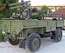 Lebanon received an unspecified number of Zastava M55 A2 autocannons sometime in the early 1970s from Yugoslavia, which were assigned to the air defense units of the Lebanese Army and the Lebanese Air Force.[13] They were extensively employed during the Lebanese Civil War (1975–1990), with several guns falling into the hands of the various competing Christian and Muslim militias after the collapse of the Lebanese Armed Forces in January 1976. Main operators included the Army of Free Lebanon,[14] Lebanese Arab Army,[15] Al-Tanzim, Kataeb Regulatory Forces,[16] Zgharta Liberation Army, the Tigers Militia, Arab Socialist Union,[17] the Druze People's Liberation Army,[18][19] the Al-Mourabitoun,[20][21][22] and the Palestine Liberation Organization[23] who mounted their Zastava M55 autocannons on technicals and M113 armored personnel carriers.[24][25][26][27]