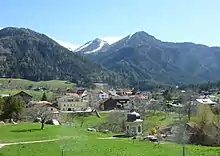 In order to begin work on a commission for the new orchestral composition which would become Gruppen, Stockhausen interrupted work on Gesang der Jünglinge in August 1955, retreating to an inexpensive rented room in the attic of a parsonage in Paspels, Switzerland, recommended to him by a colleague in the WDR studio, Paul Gredinger. He had scarcely arrived in Paspels when a message reached him, requesting a short composition to celebrate Heinrich Strobel's tenth anniversary of service at the Südwestrundfunk, Baden-Baden.[2]