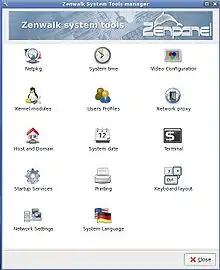 Zenwalk GNU/Linux[2] is a desktop-focused Linux distribution founded by Jean-Philippe Guillemin. It is based on Slackware with very few modifications at system level making it 100% compatible with Slackware.[3] It aims to be a modern, multi-purpose Linux distribution by focusing on internet applications, multimedia and programming tools.[4] It comes with many specialized tools and is designed for beginner through advanced users, as it offers system configuration via both graphical tools and the command line.[lower-alpha 1]