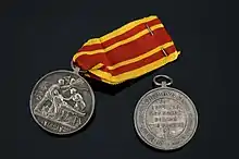 A silver medal was struck "in honor of those who assisted in the cleaning up of Tai Ping Shan." On the observe, a scene of the epidemic was engraved. On the reverse were the inscriptions "For services rendered during the Plague of 1894" and "Presented by the Hong Kong community."[57][76]