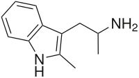 2,α-Dimethyltryptamine (2,α-DMT) is a tryptamine and a lesser-known psychedelic drug. It is the 2,α-dimethyl analog of DMT. Its synthesis was first reported in 1965.[1] Alexander Shulgin lists the dosage as 300-500 mg, and the duration as 7–10 hours in his book TiHKAL (Tryptamines I Have Known and Loved).[2] 2,α-DMT causes mydriasis and paresthesia. It also produces a calm, drunk-like feeling. Very little data exists about the pharmacological properties, metabolism, and toxicity of 2,α-DMT.
