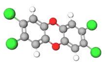 TCDD is the most potent compound (congener) of its series (polychlorinated dibenzodioxins, known as PCDDs or simply dioxins) and became known as a contaminant in Agent Orange, a herbicide used in the Vietnam War.[4] TCDD was released into the environment in the Seveso disaster.[5] It is a persistent organic pollutant.