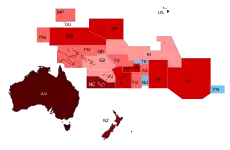 | Summary: Number of countries in the Oceania with confirmed cases: 7 And only one dependency with confirmed cases (30 June 2009) | |||