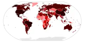 The pandemic began to taper off in November 2009,[52] and by May 2010, the number of cases was in steep decline.[53][54][55][56] On 10 August 2010, the Director-General of the WHO, Margaret Chan, announced the end of the H1N1 pandemic[7] and announced that the H1N1 influenza event had moved into the post-pandemic period.[57] According to WHO statistics (as of July 2010), the virus had killed more than 18,000 people since it appeared in April 2009; however, they state that the total mortality (including deaths unconfirmed or unreported) from the H1N1 strain is "unquestionably higher".[53][58] Critics claimed the WHO had exaggerated the danger, spreading "fear and confusion" rather than "immediate information".[59] The WHO began an investigation to determine[60] whether it had "frightened people unnecessarily".[61] A flu follow-up study done in September 2010, found that "the risk of most serious complications was not elevated in adults or children."[62] In a 5 August 2011 PLOS ONE article, researchers estimated that the 2009 H1N1 global infection rate was 11% to 21%, lower than what was previously expected.[63] However, by 2012, research showed that as many as 579,000 people could have been killed by the disease, as only those fatalities confirmed by laboratory testing were included in the original number, and meant that many without access to health facilities went uncounted. The majority of these deaths occurred in Africa and Southeast Asia. Experts, including the WHO, have agreed that an estimated 284,500 people were killed by the disease, much higher than the initial death toll.[64][65]