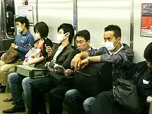 The U.S. CDC did not recommend the use of face masks or respirators in non-health care settings, such as schools, workplaces, or public places, with a few exceptions: people who were ill with the virus when around other people, and people who were at risk for severe illness while caring for someone with the flu.[140] There was some disagreement about the value of wearing face masks, as some experts feared that masks may have given people a false sense of security and should not have replaced other standard precautions.[141] Yukihiro Nishiyama, professor of virology at Nagoya University's School of Medicine, commented that the masks are "better than nothing, but it's hard to completely block out an airborne virus since it can easily slip through the gaps".[142][143] According to mask manufacturer 3M, masks will filter out particles in industrial settings, but "there are no established exposure limits for biological agents such as swine flu virus".[141] However, despite the lack of evidence of effectiveness, the use of such masks is common in Asia.[142] [143] [144] They are particularly popular in Japan, where cleanliness and hygiene are highly valued and where etiquette obligates those who are sick to wear masks to avoid spreading disease.[142][143]
