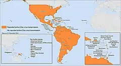 ![]() Countries and territories with active transmission of the Zika virus November 21, 2016[1] | |