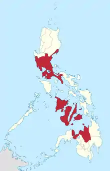 The Department of Health (DOH) of the Philippines declared a measles outbreak in Metro Manila due to a 550% increase in the number of patients from January 1 to February 6, 2019, compared to figures of the equivalent period from 2018.[1] Outbreaks were also officially declared in Central Luzon, Calabarzon, Western Visayas, Central Visayas.[2][3] and Northern Mindanao.[4] A joint report by the United Nations Children's Fund (UNICEF) and World Health Organization has stated in the report that the outbreak started much earlier in late-2017 in Mindanao.[5]