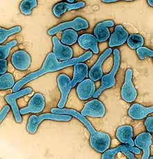 The disease's usual reservoir species is Egyptian Rousette bats.[4] Among humans, it is transmitted via direct contact with the bodily fluids of an infected individual.[5]