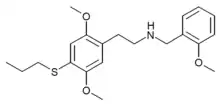 25T7-NBOMe (also known as 2C-T-7-NBOMe or NBOMe-2C-T-7), is a substituted phenethylamine derivative from the 25-NB family. It acts as an agonist at the 5-HT2A and 5-HT2C serotonin receptors, has psychedelic effects and has been sold as a designer drug.[1][2][3][4] It is illegal in Brazil.[5]