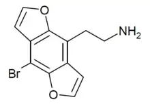 2C-B-DRAGONFLY (2C-B-DFLY) is a recreational designer drug with psychedelic effects. It can be regarded as the fully aromatic derivative of 2C-B-FLY. 2C-B-DRAGONFLY is stronger than 2C-B or 2C-B-FLY with around 2-3x the potency of 2C-B in animal studies, demonstrating the importance of the fully aromatic benzodifuran ring system for optimum receptor binding at 5-HT2A, but it is still considerably less potent than its alpha-methyl derivative Bromo-DragonFLY.[1][2]