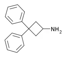 3,3,-Diphenylcyclobutanamine is a psychostimulant drug which was originally prepared as an antidepressant in the late 1970s.[1] It appears to inhibit the reuptake of serotonin, norepinephrine, and dopamine, and may also induce their release as well.[1] The N-methyl and N,N-dimethyl analogues of the compound are also known and are more potent.[1] All three agents produce locomotor stimulation in animal studies, with the tertiary amine being the strongest.[1]