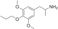 3C-P (α-Methyl-4-propoxy-3,5-dimethoxyphenethylamine) is a psychedelic phenethylamine. It has structural and pharmacodynamic properties similar to the drugs mescaline, proscaline, and amphetamine. Little information exists on the human pharmacology of 3C-P, but a psychedelic dosage appears to be 20–40 mg, and is accompanied by stimulant and psychedelic effects such as visual enhancement and distortion. It can be synthesized from syringaldehyde by reaction with n-propyl iodide followed by condensation with nitroethane and reduction.[1]